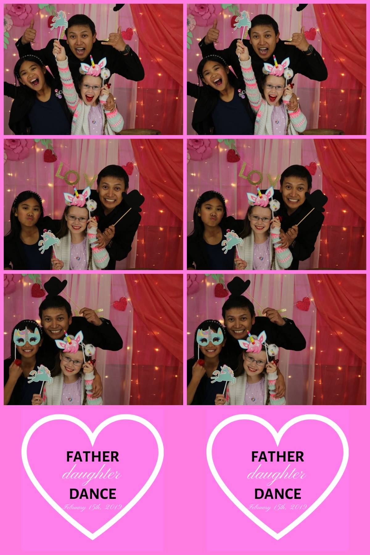 We had the pleasure of being apart of a Valentine’s day Father Daughter Dance in Oceanside in February! DJ plus photo booth. Here are a few of the photo booth snaps! We can customize the photo strips to your event!